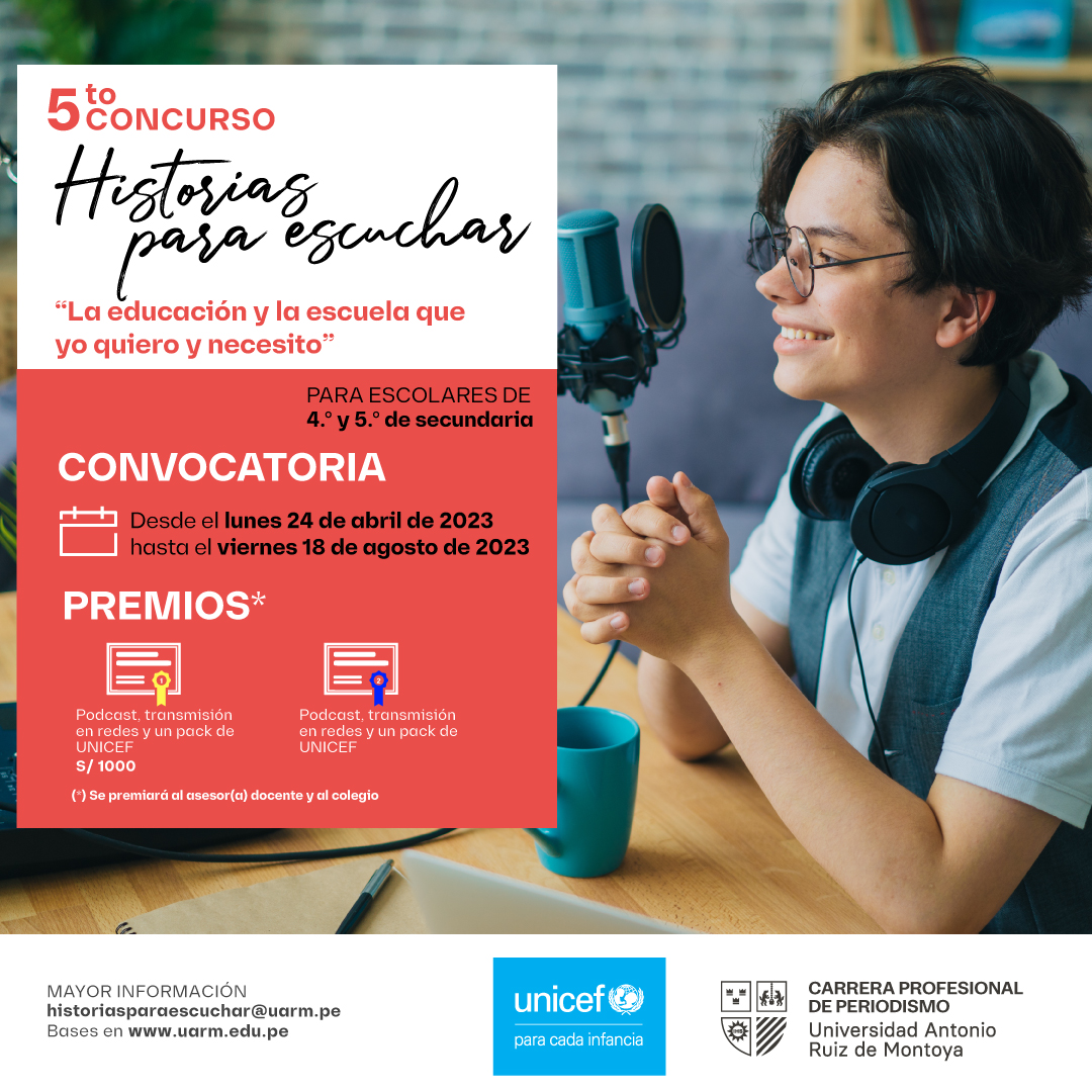 En el 2019 se lanzó el primer concurso escolar historias para escuchar, con el objetivo de brindar un espacio para oír las voces de los escolares, respecto de temas afines a los ideales de la Ruiz de Montoya, así como para potenciar su creatividad textual. Desde entonces se viene realizando año a año, el resultado ha sido muy positivo y la participación de los escolares lo demuestra.