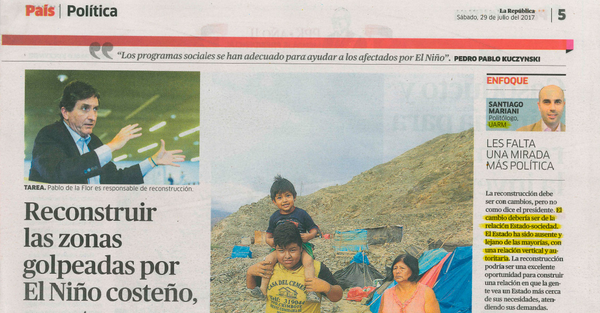 En el mensaje ha estado ausente esta dimensión más política de la reconstrucción, una instancia que puede permitir acercarnos a alcanzar el desarrollo. No se trata solo de cifras. El asunto es mucho más profundo y requiere de un abordaje distinto y no tan tecnocrático. Se trata de una cuestión profundamente política de cara a poder conectar con la sociedad y no solo hacer algo técnico y reparar infraestructura. Eso le falta como mirada a la reconstrucción en un gobierno que tiene un sesgo muy técnico.