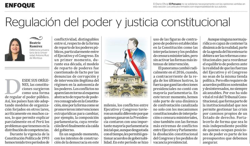 [Artículo] Beatriz Ramírez:  Regulación del poder y justicia constitucional