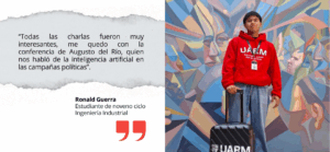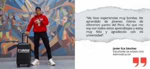 “Ha sido muy interesante debatir con jóvenes líderes de todo el país. Me llevo culturas de cada parte del Perú y motivación por participar más activamente y ser un agente de cambio”, Ronald Guerra, estudiante de noveno ciclo de Ingeniería Industrial.
