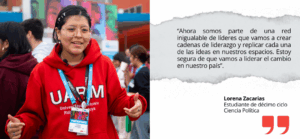 Por su parte, Lorena Zacarias, estudiante de décimo ciclo de Ciencia Política, enfatiza que lograr ese perfil de liderazgo requiere que los jóvenes conozcan sus fortalezas y debilidades. Ello acompañado de una cualidad: la humildad, lo cual es sumamente importante para relacionarse con otros compañeros, generar ideas y lograr el cambio.