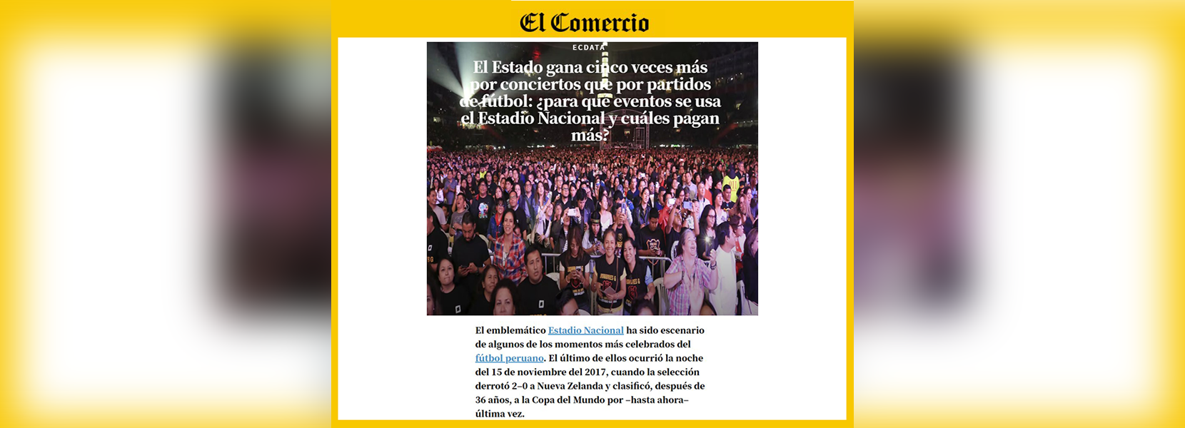 "Los conciertos y los partidos de fútbol son importantes, pero hay un gran problema: ¿Cuántos espacios públicos de la envergadura del Estadio Nacional tenemos? Lo más importante es que exista planificación”, detalló.