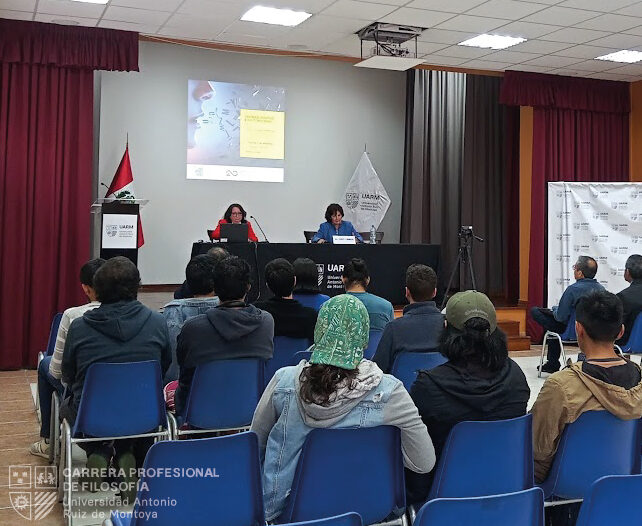 La Dra. Lourdes Flamarique Zaratiegui, docente investigadora de la Universidad de Navarra y autora de diferentes publicaciones especializadas como el libro “La larga sombra de lo religioso, secularización y resignificaciones”, visitó la Universidad Antonio Ruiz de Montoya (UARM). Sus líneas de investigación son filosofía contemporánea, filosofía del lenguaje y hermenéutica. Participó en tres eventos académicos, dirigidos al público en general, y compartió sus conocimientos con estudiantes de la carrera de Filosofía al asistir a una sesión de los cursos: Filosofía de la Religión, y Fenomenología y Hermenéutica. En cada uno de los eventos destacó su pasión por su carrera y sus amplios conocimientos en los diferentes temas de su especialidad.
