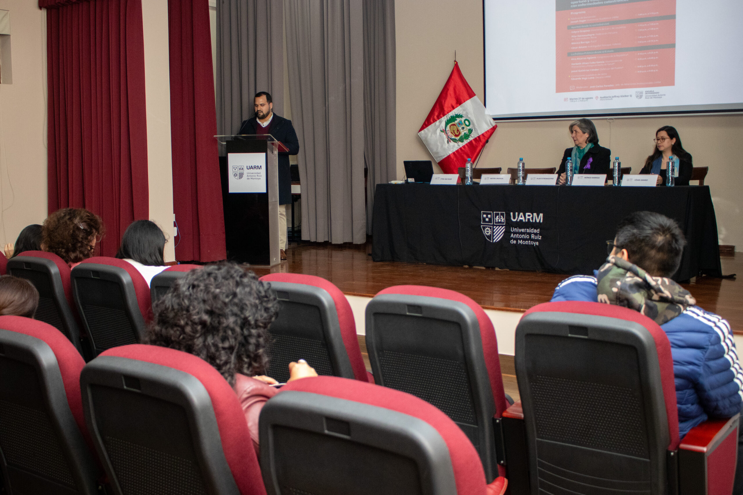 Joseph Dager, vicerrector académico, estuvo a cargo de las palabras de bienvenida y en su alocución enfatizó en que debemos ver a la salud no solo como un servicio, sino como un derecho. Destacó que el abordaje de este tipo de enfermedades que llegan a ser devastadoras en diferentes ámbitos de la persona demanda la participación del Estado, de la sociedad civil y de la academia para el fomento de políticas públicas que aseguren predictibilidad en el tratamiento.