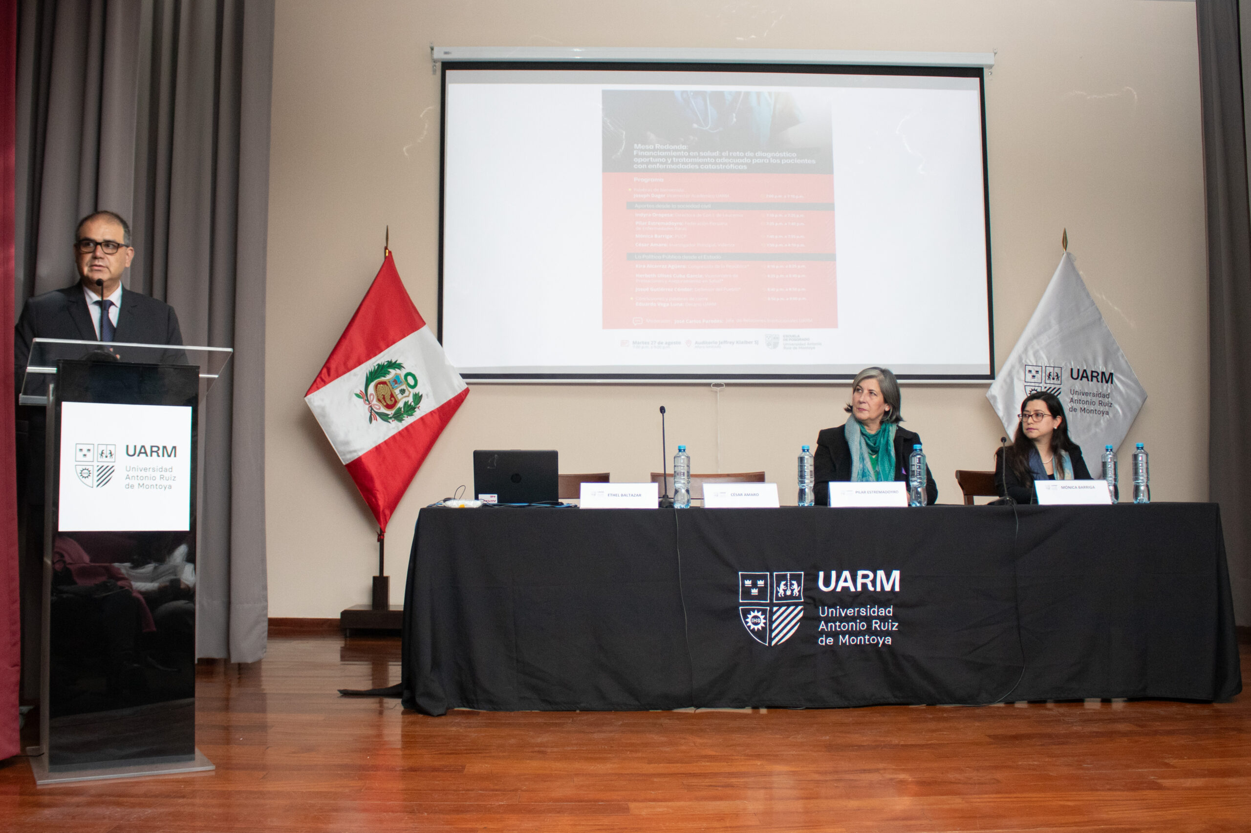 La Escuela de Posgrado de la Universidad Antonio Ruiz de Montoya (UARM) y Roche Farma (Perú) presentaron la mesa redonda Financiamiento en salud: El reto de diagnóstico oportuno y tratamiento adecuado para los pacientes con enfermedades catastróficas. Los panelistas, representantes de la sociedad civil, compartieron importantes reflexiones acerca de las graves consecuencias en la vida de los pacientes por no acceder a una atención de calidad ni medicamentos de manera oportuna, lo que trae consigo el deterioro de su salud y les quita la posibilidad de valerse por sí mismos.