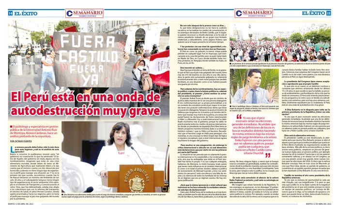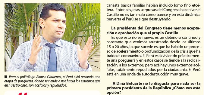 En una entrevista para el semanario Diario Central; Alonso Cárdenas, docente de la carrera de Ciencia Política de la universidad Antonio Ruiz de Montoya, realizó un análisis profundo de la coyuntura política y social que hemos vivido en los últimas meses.