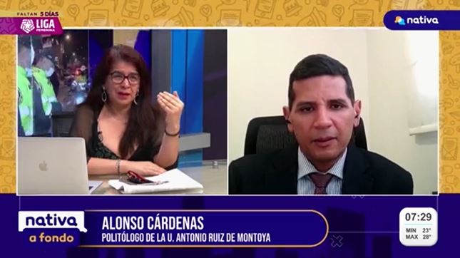 Alonso Cárdenas, docente de la carrera de Ciencia Política de la Universidad Antonio Ruiz de Montoya (UARM), participó en una entrevista para Nativa TV, acerca de la moción de vacancia a la presidenta Dina Boluarte. “De aquí al jueves cualquier situación puede ocurrir que ponga en riesgo la presidencia, esto por la fragilidad política que existe en Perú. Esto, aunque las personas asesinadas durante las protestas no hayan significado un rechazo y ruptura con el gobierno por parte del Congreso, ya que el gabinete Otárola obtuvo la confianza, pero ahora estamos frente a denuncias que comprometen a su círculo más cercano”, explicó.