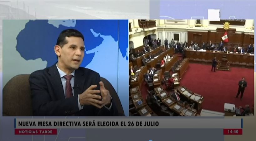 Alonso Cárdenas, docente de la carrera de Ciencia Política de la Universidad Antonio Ruiz de Montoya (UARM), participó en una entrevista vía TV Perú Noticias en la que comentó diferentes temas de coyuntura política. Consultado sobre la próxima elección de la Mesa Directiva expresó que el Congreso en su conjunto está en una crisis muy seria de credibilidad y es la institución de ese nivel más desprestigiada de América Latina. “Lo que hoy podemos vislumbrar son dos grandes bloques: Fuerza Popular y los partidos cercanos: Avanza País, Renovación Popular y parte de Acción Popular y, del otro lado, tenemos el bloque liderado por Perú Libre con satélites como el Bloque Magisterial y Perú Bicentenario. Las dos bancadas que podrían dirimir qué lista gana serían Podemos y Somos Perú”, expresó.