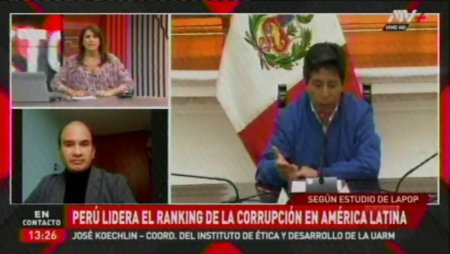 José Koechlin, coordinador del Instituto de Ética y Desarrollo de la Universidad Antonio Ruiz de Montoya (UARM), participó en una entrevista en ATV+ acerca del resultado de la última medición del Barómetro de las Américas, realizada mediante una investigación del Proyecto de Opinión Pública de América Latina (LAPOP), en el que Perú lidera el ranking de los países de Latinoamérica con mayor percepción de corrupción. “Sin duda es preocupante, sin embargo, también es una buena señal el que tengamos políticos sometidos a la justicia del país porque ello significa que el aparato judicial en el Perú funciona, a diferencia de otros países en donde autoridades implicadas en corrupción nunca han sido detenidas ni tan siquiera citadas para declarar como en el caso de República Dominicana en donde jamás un presidente ha sido juzgado”, expresó.