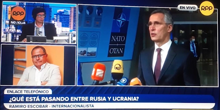 Ramiro Escobar, docente de la carrera de Ciencia Política de la Universidad Antonio Ruiz de Montoya (UARM), participó en una entrevista para RPP acerca de las claves para comprender el conflicto entre Rusia y Ucrania. Explicó que como en todo conflicto bélico existe una guerra mediática o una guerra de diferentes versiones de parte. “Estamos en la época de la Guerra Fría y la situación es muy distinta, Rusia ya no es la URSS, pero es un país poderoso que tiene uno de los Ejércitos más potentes del mundo y está muy preocupada hace varios años por el avance de la OTAN cerca de sus fronteras, lo cual es un incumplimiento de la promesa que le hicieron representantes de EE. UU. y algunos países europeos quienes conversaron con Mihail Gorbachov y le ofrecieron no expandir la OTAN, ello hacia 1990 cuando la URSS estuvo por caerse,”, explicó.