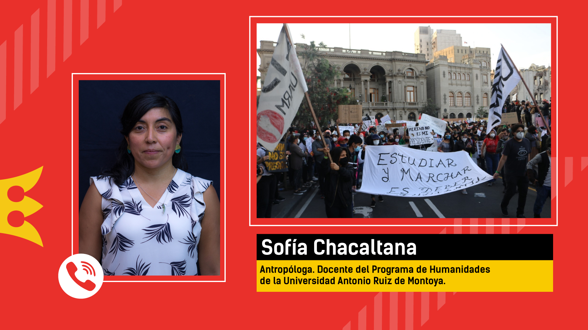 Sofía Chacaltana, docente del Programa de Humanidades de la Universidad Antonio Ruiz de Montoya, en una entrevista con Radio Nacional de Argentina, manifestó que el Perú vivió momentos duros, pero también muy despiertos durante la crisis política “Es un despertar muy interesante, los jóvenes se han organizado a través de las plataformas digitales para llevar a cabo las manifestaciones” comentó.