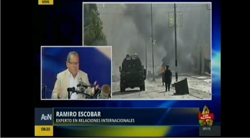El internacionalista de la Universidad Antonio Ruiz de Montoya, Ramiro Escobar, participó en un panel del programa Ampliación de Noticias de RPP, junto a Ariel Segal y Mauricio Novoa, luego de que el presidente de Estados Unidos, Donald Trump, reconoció a Jerusalén como capital de Israel. Calificó el hecho como una forma imprudente de tratar las relaciones con la comunidad árabe.