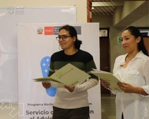 Durante la ceremonia de clausura tres jóvenes del SOA y un padre de familia compartieron su testimonio y agradecieron a la institución, a la docente y los estudiantes por la capacitación. También estuvo presente Carlos Vidal, director del Servicio de Orientación al Adolescente de Lima y Soledad Escalante, directora de Oficina de Formación Humanista de la UARM. En un emotivo encuentro, se entregó el reconocimiento a los participantes. Es importante recordar que un Centro Juvenil de Medio Abierto – Servicio de Orientación al Adolescente (SOA) es un espacio de reinserción social del adolescente en conflicto con la ley penal.