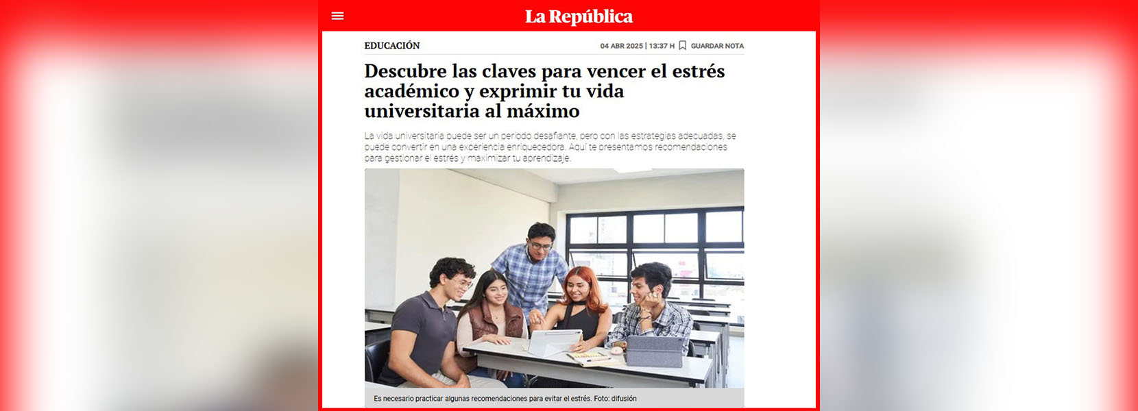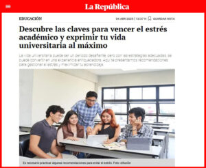 Miguel Flores Galindo, docente de la carrera de Psicología de la Universidad Antonio Ruiz de Montoya (UARM), participó en un informe del diario La República sobre cómo vencer el estrés académico y lograr los objetivos académicos en la etapa universitaria.