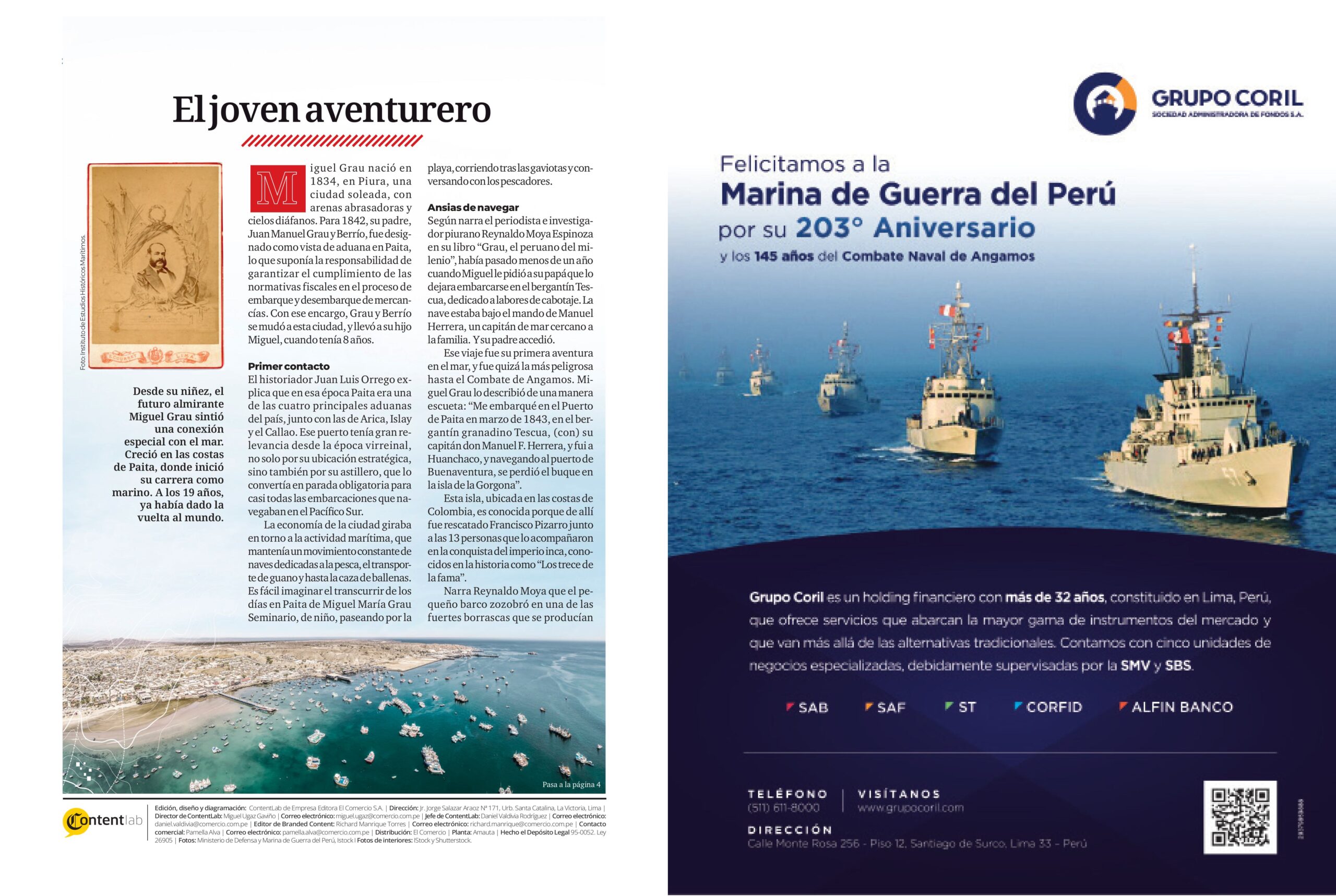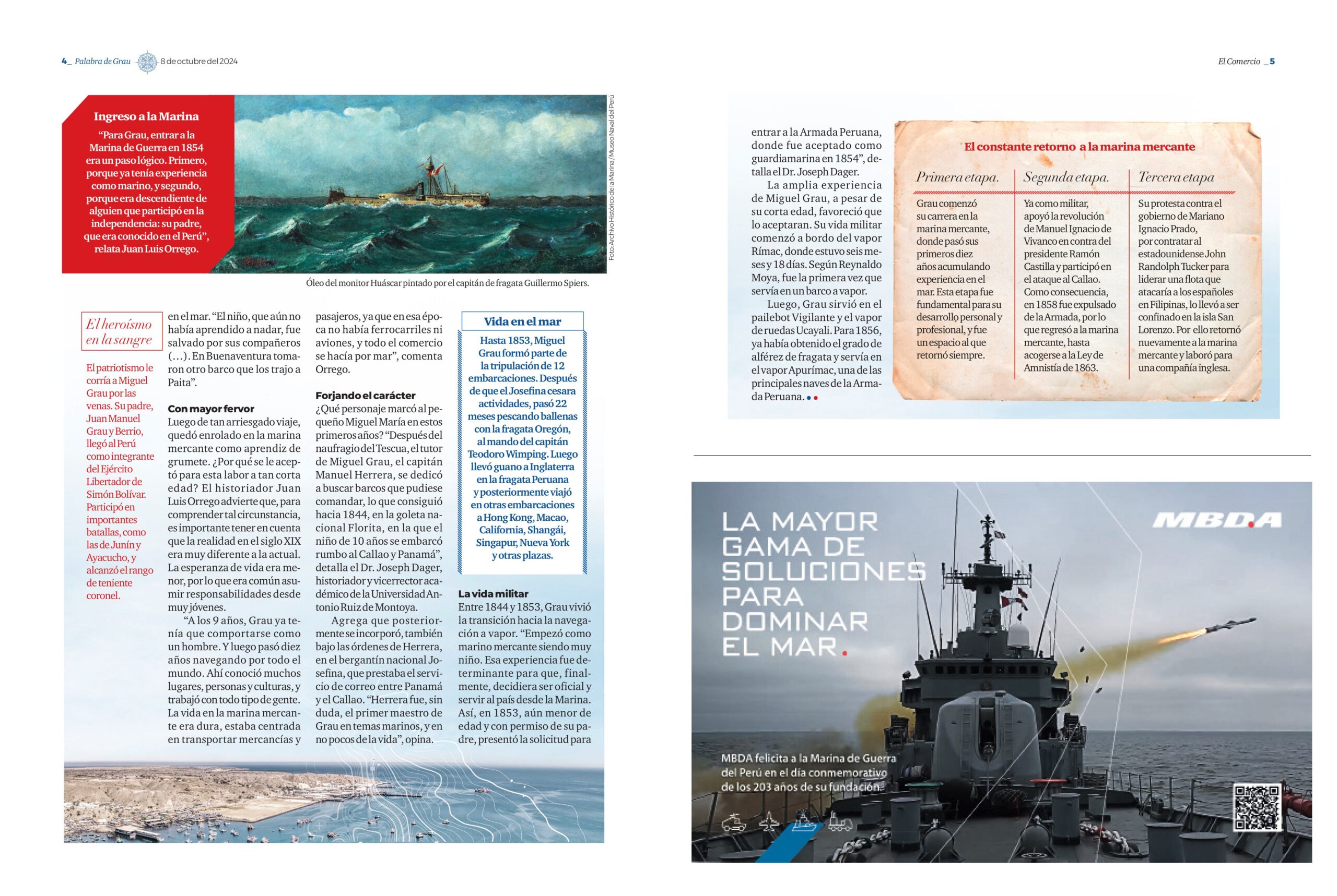 El historiador agregó que, posteriormente, se incorporó, también bajo las órdenes de Herrera, en el bergantín nacional Josefina, que prestaba el servicio de correo entre Panamá y el Callao. “Herrera fue, sin duda, el primer maestro de Grau en temas marinos, y en no pocos de la vida”, opinó.