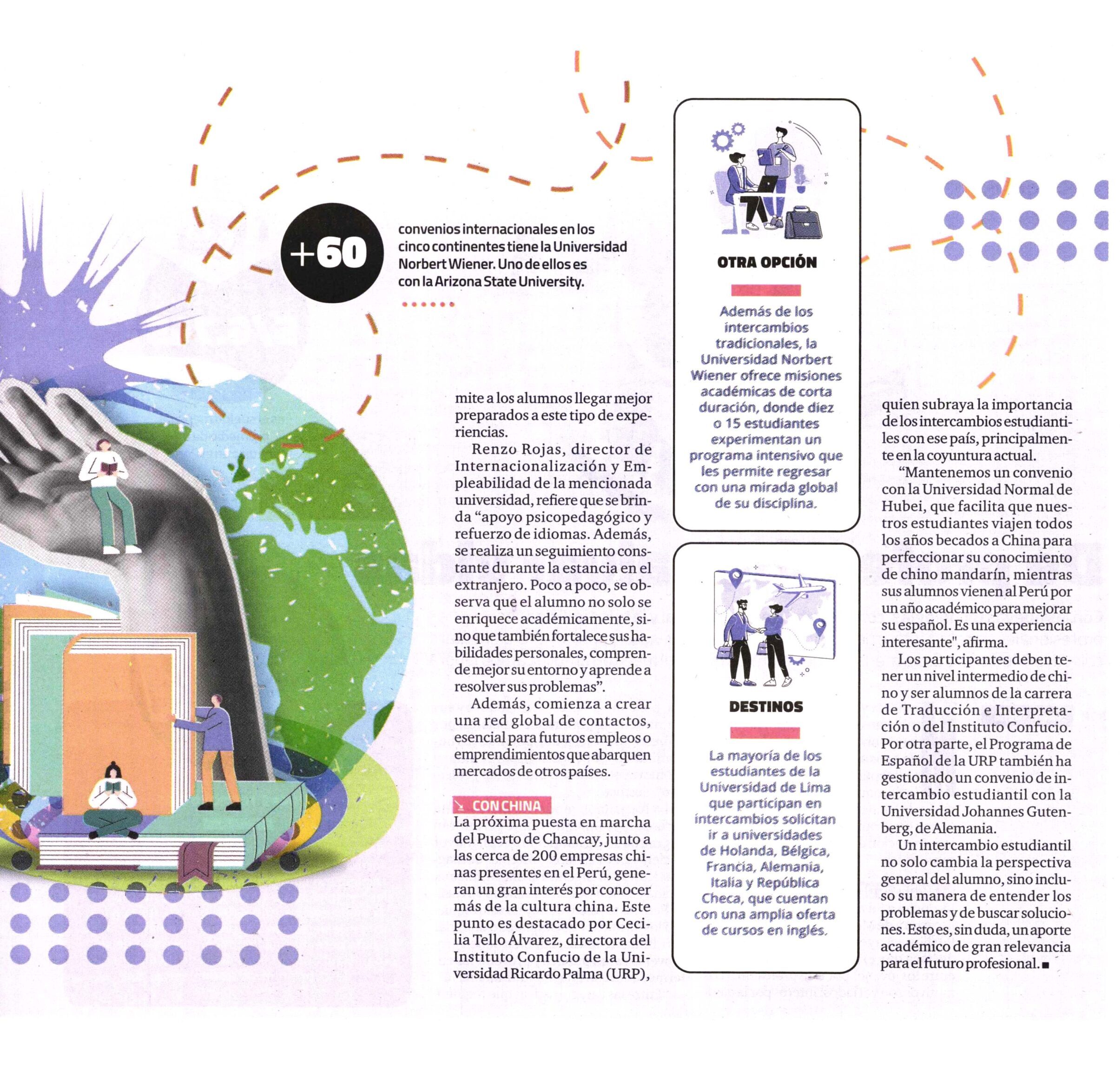 José Carlos Paredes, director comercial y de Relaciones Institucionales de la Universidad Antonio Ruiz de Montoya (UARM), participó en un informe de El Comercio – Educación Total, sobre el proceso para lograr experiencias internacionales desde el pregrado. Compartió información sobre la movilidad académica de los estudiantes y detalló que más de 200 jóvenes de diferentes carreras tuvieron una experiencia internacional desde el 2018.