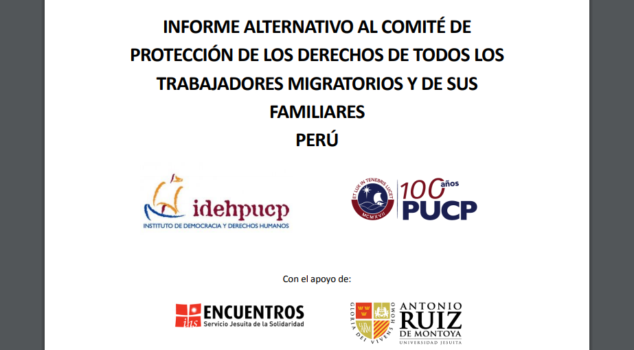 La Escuela Profesional de Derecho de la Universidad Antonio Ruiz de Montoya y el Servicio Jesuita de la Solidaridad Encuentros, colaboraron con el Instituto de Democracia y Derechos Humanos de la PUCP (Idehpucp) para elaborar el Informe alternativo al Comité de trabajadores migratorios y de sus familiares de Naciones Unidas. Este estudio abordó la situación de vida y trabajo de los ciudadanos colombianos y venezolanos en el Perú.