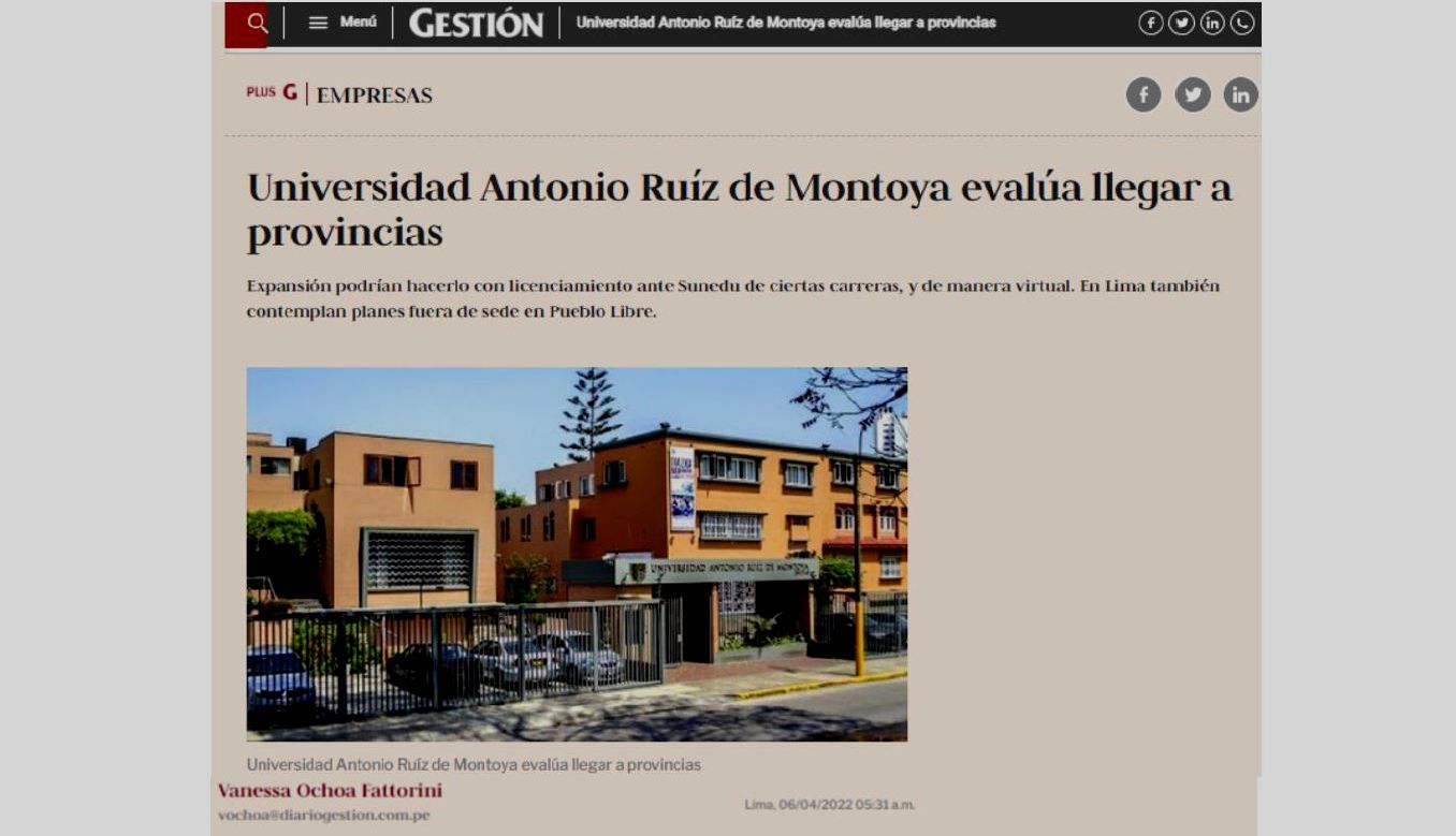 El rector de la Universidad Antonio Ruiz de Montoya, P. Rafael Fernández Hart, SJ, participó en un informe del diario Gestión, acerca de los planes de expansión y próximos proyectos que tiene la universidad.
