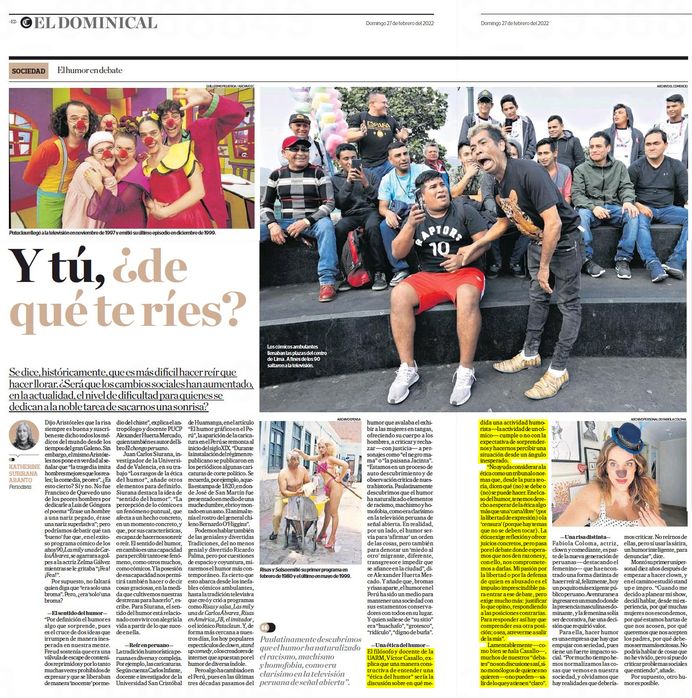 Víctor Casallo, docente de la carrera de Filosofía de la Universidad Antonio Ruiz de Montoya (UARM), participó en un informe de El Dominical de El Comercio acerca de la ética del humor. Explicó que una manera constructiva de entender la ética del humor sería la discusión sobre en qué medida una actividad humorista cumple o no con la expectativa de sorprendernos y hacernos percibir una situación desde un ángulo inesperado.