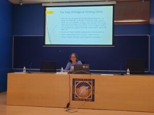 Por otro lado, la profesora Pinasco también participó en la 47th Conference de la Asociación Española de Estudios Anglo-Norteamericanos (AEDEAN), de la cual es miembro. Este evento académico se llevó a cabo en la Universidad Pablo de Olavide, en Sevilla, donde presentó la ponencia titulada “Grief in Literary Form. Joan Didion Approaches to Death and Living”, producto de los avances de su investigación doctoral en Lenguas Modernas: investigación en lingüística, cultura y traducción, que cursa actualmente en la Universidad de Alcalá.