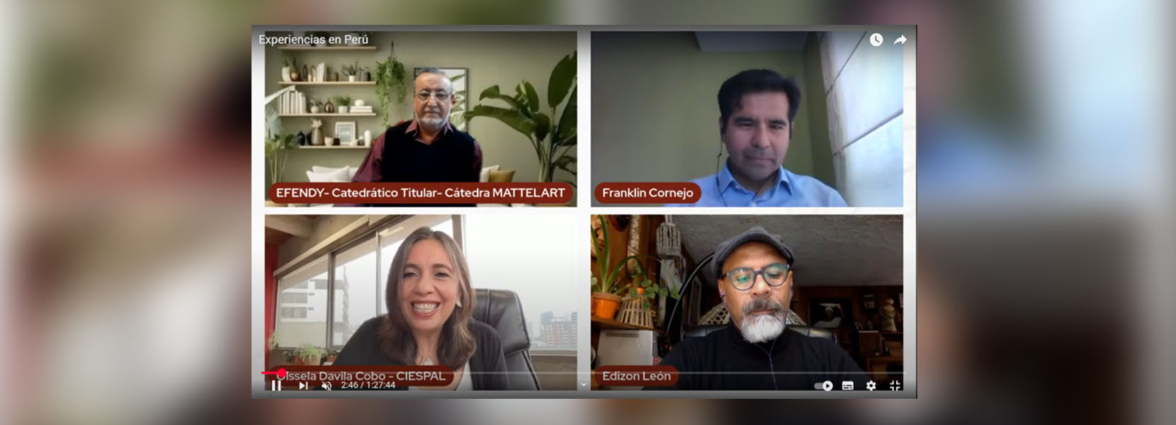 Posteriormente, brindó una ponencia en el Centro Internacional de Estudios Superiores de Comunicación para América Latina (CIESPAL) de Ecuador, acerca de las “Experiencias sobre comunicación crítica y democrática en el Perú”. Abordó el papel de la comunicación para construir vínculos frente a la polarización y la crisis política, como parte del ejercicio de la ciudadanía y la deliberación.