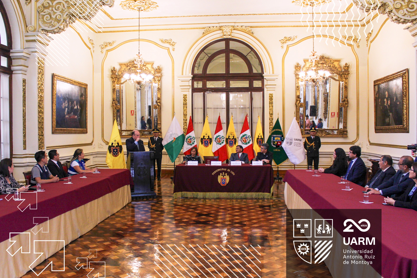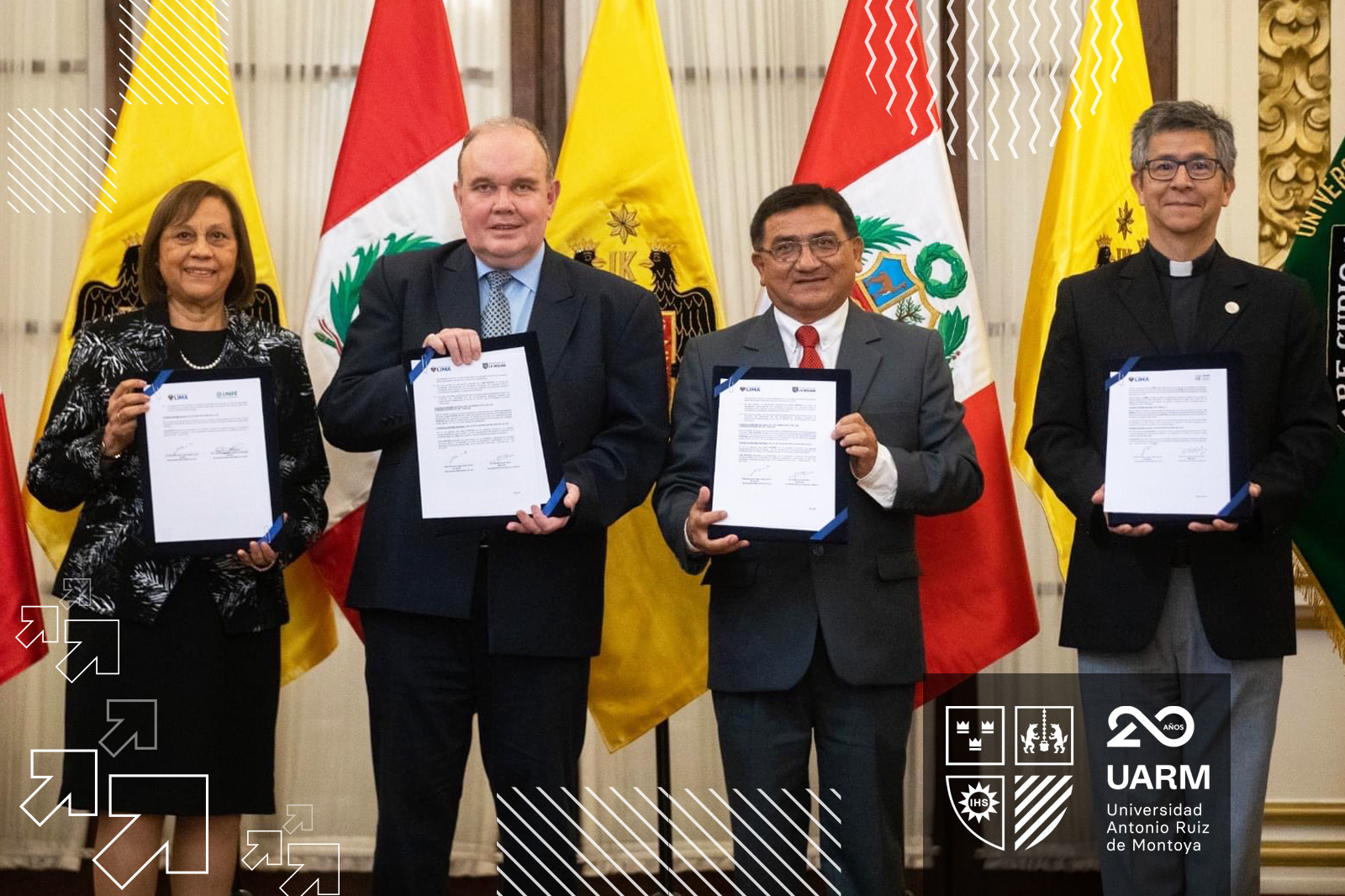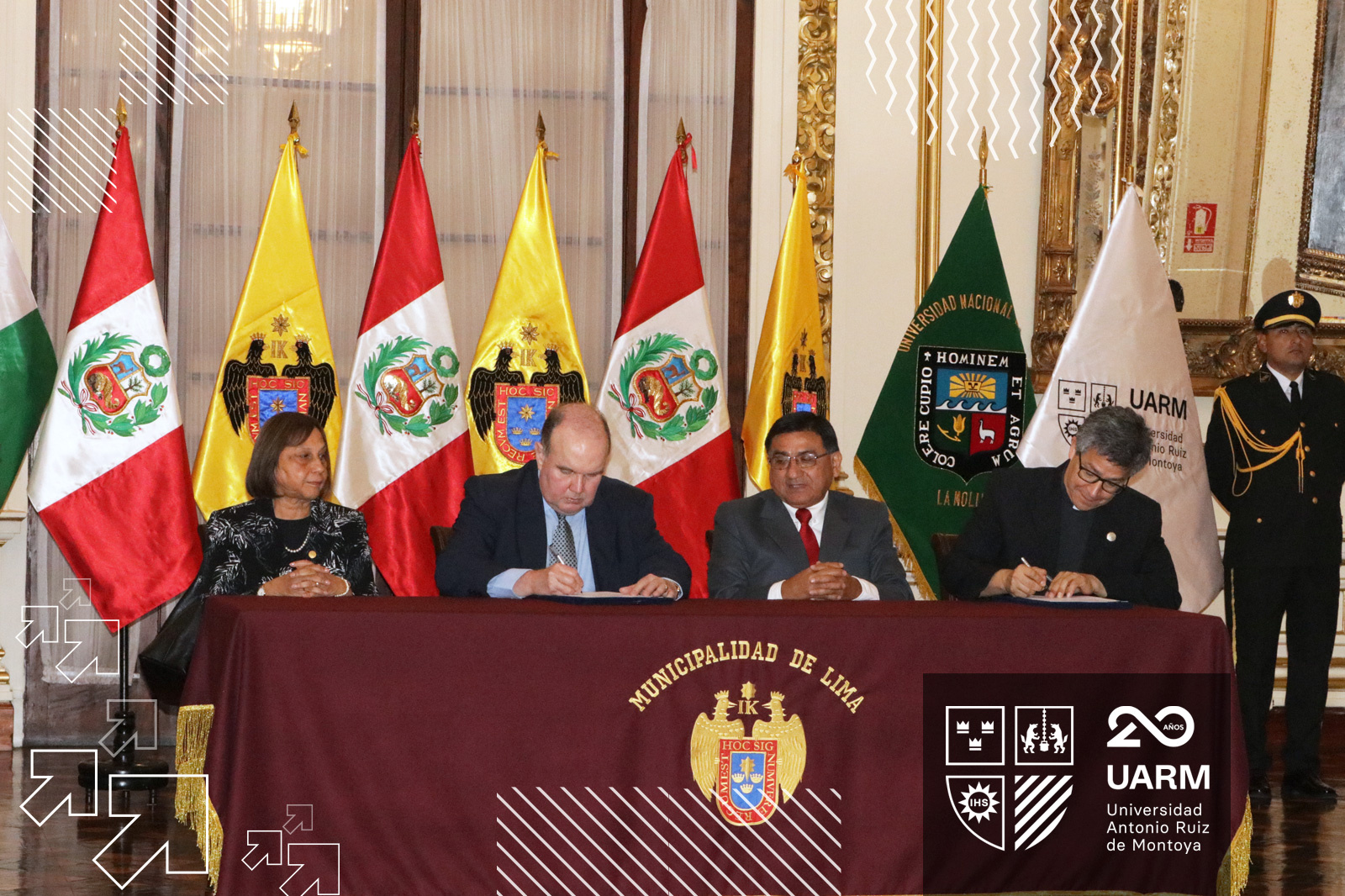 Con el propósito de articular acciones conjuntas para la promoción del voluntariado juvenil, entre otras actividades que fortalezcan la vinculación con la comunidad educativa y su entorno, la Municipalidad Metropolitana de Lima convocó a la Universidad Antonio Ruiz de Montoya (UARM) junto a otras dos prestigiosas instituciones de educación superior: la Universidad Nacional Agraria La Molina y la Universidad Femenina del Sagrado Corazón. La firma del convenio se realizó en la MML con la participación del alcalde, Rafael López Aliaga, y los rectores: el Dr. Américo Guevara, la Dra. Victoria García García y el Dr. Rafael Fernández Hart, de la UNALM, de la UNIFÉ y de la UARM, respectivamente.