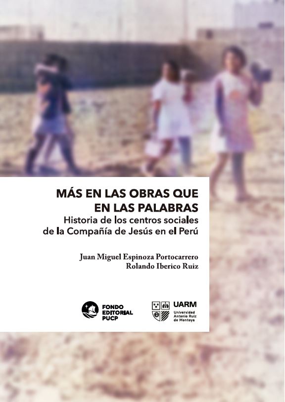 El Fondo Editorial de la Universidad Antonio Ruiz de Montoya (UARM) en coedición con la PUCP presentan el libro Más en las obras que en las palabras. Historia de los centros sociales de la Compañía de Jesús en el Perú. Juan Miguel Espinoza Portocarrero y Rolando Iberico Ruiz, coautores del libro, son especialistas en la historia del catolicismo en el Perú y han contribuido significativamente con artículos en revistas especializadas y libros. Esta publicación se realiza en el marco del Año Ignaciano 2021-2022, que conmemora los 500 años de la conversión espiritual de San Ignacio de Loyola y los 400 años de su canonización junto con la de San Francisco Javier.