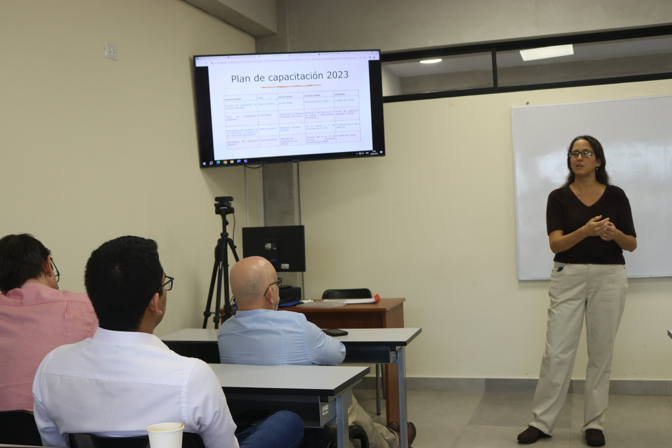 Sandra Pinasco, jefa de Desarrollo de la Investigación (DI), agradeció la presencia de los docentes y compartió el Plan de capacitación 2023, que incluye una amplia gama de recursos para facilitar la investigación. Así, el 30 de mayo se realizó el Taller sobre cómo lograr publicaciones en revistas indexadas. Luego se han considerados talleres sobre estrategias para la gestión de la investigación, que incluye la búsqueda de la información, el gestor de referencias Mendeley y el manejo de bibliografía. Le sigue en la programación un Taller sobre estrategias de publicación efectiva en Scopus.
