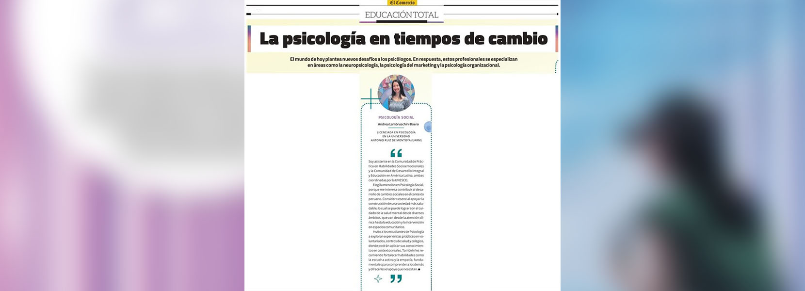 Testimonio publicado en el Suplemento Educación Total de El Comercio – 31 de enero 2025