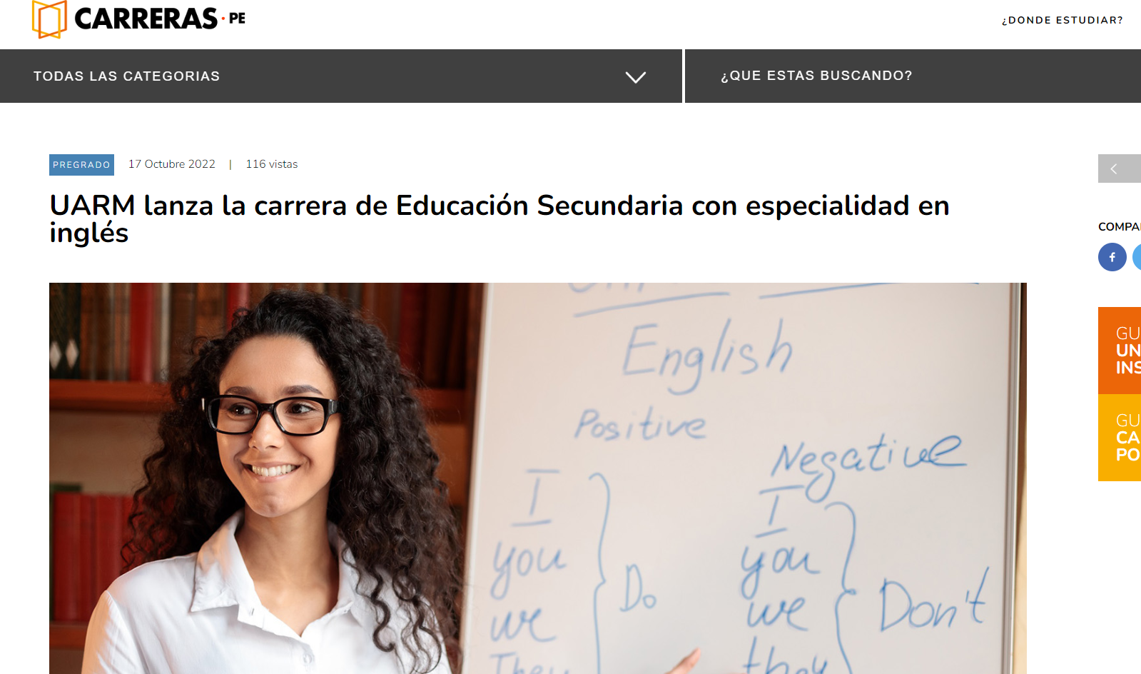 El relanzamiento de la carrera de Educación Secundaria con especialidad en inglés de la UARM fue difundido por Carreras.pe, un portal informativo especializado en educación superior, en el cual se desatacó la importancia de formar docentes de inglés para el nivel secundario que cuenten con sólidas bases pedagógicas para la enseñanza de una segunda lengua. Es por ello, que esta nueva oferta académica propone la metodología Content and Language Integrated Learning – CLIL (Aprendizaje integrado de Contenidos y Lenguas Extranjeras – AICLE), que permite el desarrollo del proceso de enseñanza-aprendizaje de lenguas.