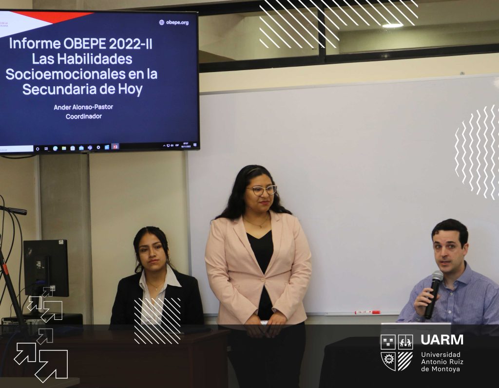 El miércoles 16 de noviembre, se invitó a directores de educación secundaria, a un encuentro en el campus de la UARM, para intercambiar experiencias y expectativas entre los educadores, en el marco de la presentación de los resultados del Informe del del Observatorio de la Educación Peruana (OBEPE) 2022-II. Ander Alonso- Pastor, coordinador del OBEPE y de la Catedra UNESCO en Políticas Educativas y Agenda 2030 de la UARM, brindó la charla “Las habilidades socioemocionales en la secundaria de hoy”.