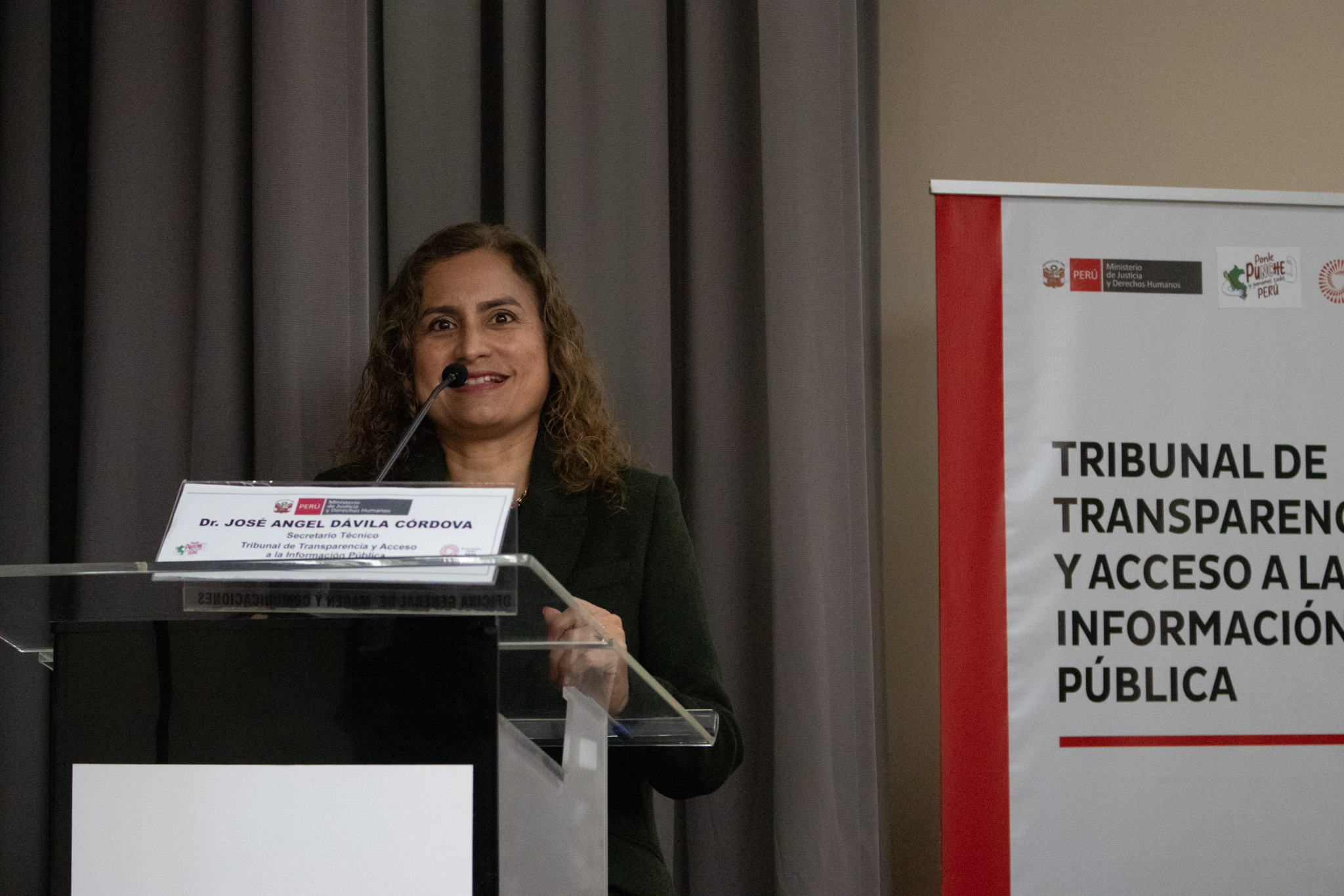 A su turno, Roberto Burneo, juez supremo titular del Poder Judicial, explicó sobre la transparencia judicial, ya que en el caso de procesos judiciales no toda la información es de libre acceso para las personas, por ejemplo, los asuntos relacionados con la seguridad nacional. A continuación, expuso Vanessa Luyo, presidenta del Tribunal de Transparencia y Acceso a la Información Pública (TTAIP), quien compartió los precedentes y los criterios resolutivos del TTAIP, exponiendo diversa casuística. Explicó que este Tribunales un órgano resolutivo del MINJUSDH, y constituye la última instancia administrativa en materia de transparencia y derecho al acceso a la información pública a nivel nacional. Resuelve controversias que se susciten en dichas materias.