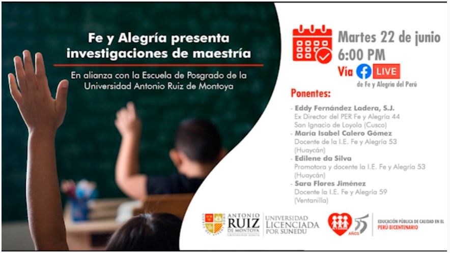 Fe y Alegría y la Escuela de Posgrado de la Universidad Antonio Ruiz de Montoya (UARM) organizaron la presentación de las investigaciones realizadas por docentes de Fe y Alegría que cursaron la Maestría de Educación en la UARM.