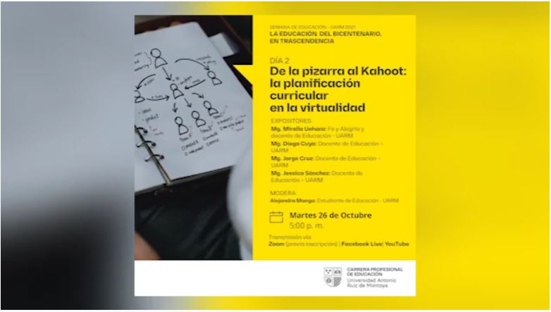 El día 2 de la Semana de Educación UARM abordó el tema de la pizarra al Kahoot: la planificación curricular en la virtualidad. Contó con la participación de Mirella Uehara, Diego Cuya, Jorge Cruz y Jessica Sánchez.