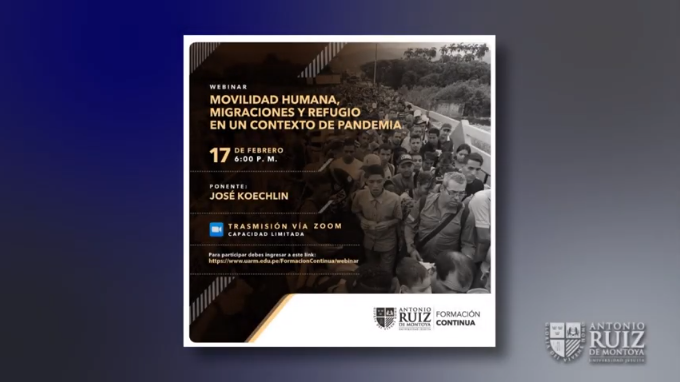 El área de Formación Continua de la Universidad Antonio Ruiz de Montoya presentó el curso como parte de la Experiencia Ruiz. El curso-taller “Movilidad humana, migraciones y refugio” busca reflexionar sobre los conceptos de movilidad humana, migraciones y refugio en un contexto donde el Perú, en los últimos años, se ha convertido en país de tránsito y destino para miles de migrantes de diversos países de América Latina, particularmente, de Venezuela para lo cual sus capacidades productivas, legales, institucionales y de seguridad no estaban preparadas. Sin duda, esta situación ha traído enormes retos para la política pública que el Estado debe saber responder y que a lo largo del curso iremos reflexionando.