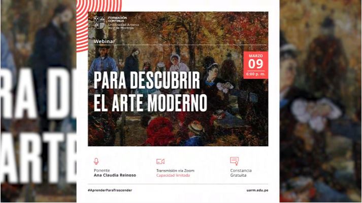 El área de Formación Continua presentó el webinar: Para descubrir el Arte Moderno, realizado el 9 de marzo. En el evento participó Ana Claudia Reinoso, docente del curso de extensión Apreciación del arte moderno (S. XIX e inicios del S.XX)