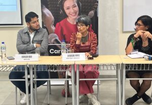 La mesa inaugural abordó el tema Prensa y Colonialidad con la participación de Kerly Garavito, economista, especialista en estudios afro latinoamericanos y caribeños, y colaboradora en Ojo Público, Salud con Lupa y El Foco, e integrante de Ruray Colectiva Feminista; y con Suiry Sobrino, comunicadora especialista en género, creadora de contenido decolonial y colaboradora en Afrofeminas, Píkara Magazine y La cadera de Eva.
