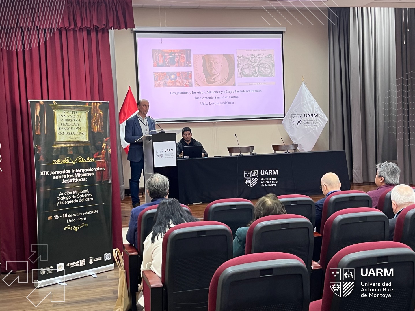 Las palabras de inicio estuvieron a cargo del Dr. Carlos Daniel Paz, coordinador del Comité Académico Internacional de las XIX Jornadas Internacionales sobre las Misiones Jesuíticas y del Dr. Juan Dejo Bendezú SJ, vicerrector de Investigación de la UARM, oficial de Archivo y Patrimonio de la Compañía de Jesús en el Perú, coordinador del Comité Científico Local y coordinador de las XIX Jornadas Internacionales sobre las Misiones Jesuíticas. “Este encuentro nos permitirá esclarecer nuevas perspectivas respecto a la historia de la Compañía de Jesús. Más de 90 ponentes venidos de diferentes partes del mundo hacen que sea un espacio ideal de diálogo y de generación de proyectos comunes”, expresó Juan Dejo SJ.